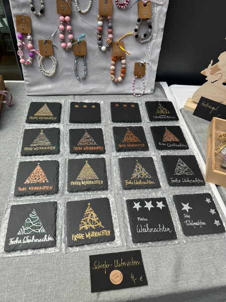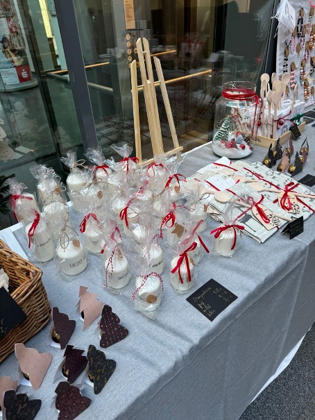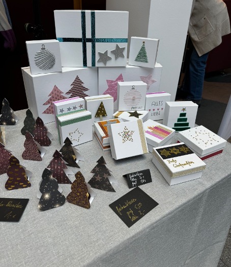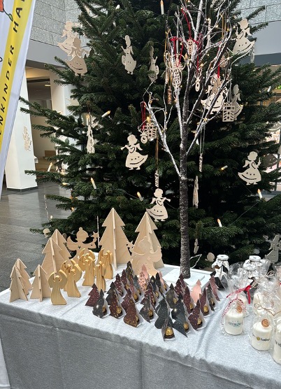Auch im Jahr 2024 wurden in der Hauptstelle der Sparkasse in liebevoller Handarbeit hergestellte Nützliches und Präsente für die Advent- und Weihnachtszeit verkauft.